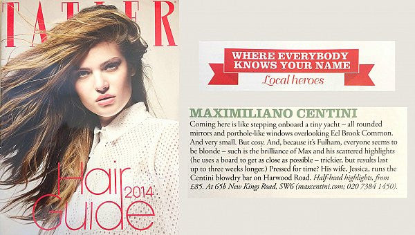 “ Coming here is like stepping onboard a tiny yacht – all rounded mirrors and porthole-like windows overlooking Eel Brook Common. And very small. But cosy. And, because it’s Fulham, everyone seems to be blonde – such is the brilliance of Max and his scattered highlights ( he uses a board to get as close as possible – trickier, but results last uo to three weeks longer.) Pressed for time? His wife, Jessica, runs the Centini Blowdry Bar (www.myblowdrybar.co.uk ) on Harwood road. Half Head highlights, from £85. At 65b New Kings road London SW6 ( maxcentini.com; 02073841450)”